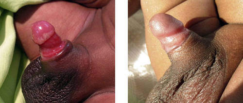 Wenn ein Glied der Gefäßklemme versehentlich in die Harnröhre gesteckt wird und geschlossen wird, klemmt es den oberen Abschnitt der Harnröhre und der Eichel ab, was zu einer Harnröhrenöffnung am Dorsum (Oberseite) der Eichel führt.(46)